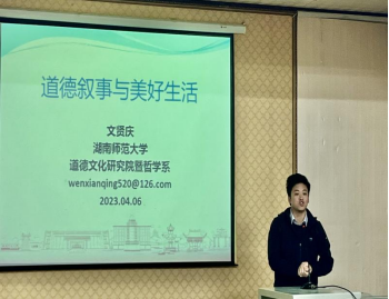 特邀湖南师范大学文贤庆教授为师生作了题为“道德叙事与美好生活”的学术报告,报告由姜文明副院长主持。