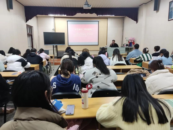 王延玉老师从百年来中国共产党带领中国人民不懈奋斗的历史出发,带大家领略决议背后蕴含的重要意义和历史经验。同时结合自身的工作经验与生活经历,对同学们提出了“我们在党的怀抱中成长,要感恩党,向党靠拢”的殷切期望。