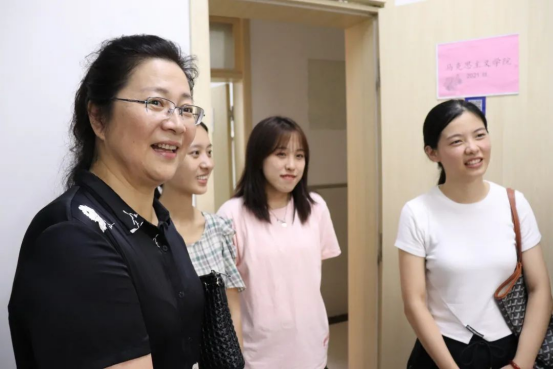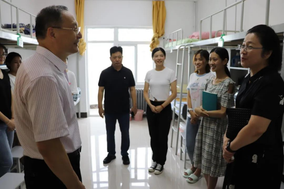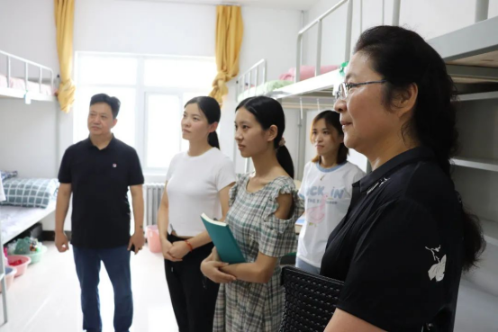 党委书记赵茗、副书记姜淮和新生辅导员姜楠、导员助理张妍的陪同下,来到2021级学生公寓走访视察。