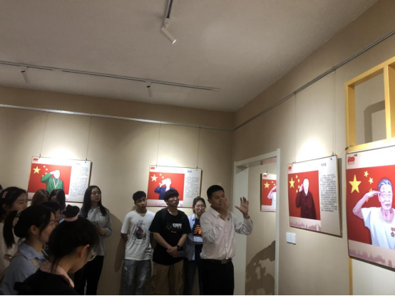 参观时,同学们认真倾听学长的讲述,看着一位位老兵的漫画形象,听着一个个鲜活生动的故事,当年战火纷飞的场景仿佛浮现在眼前。讲解结束,同学们受到巨大的震撼与鼓舞,自发地为他们鼓掌,以表示我们深深的敬意。