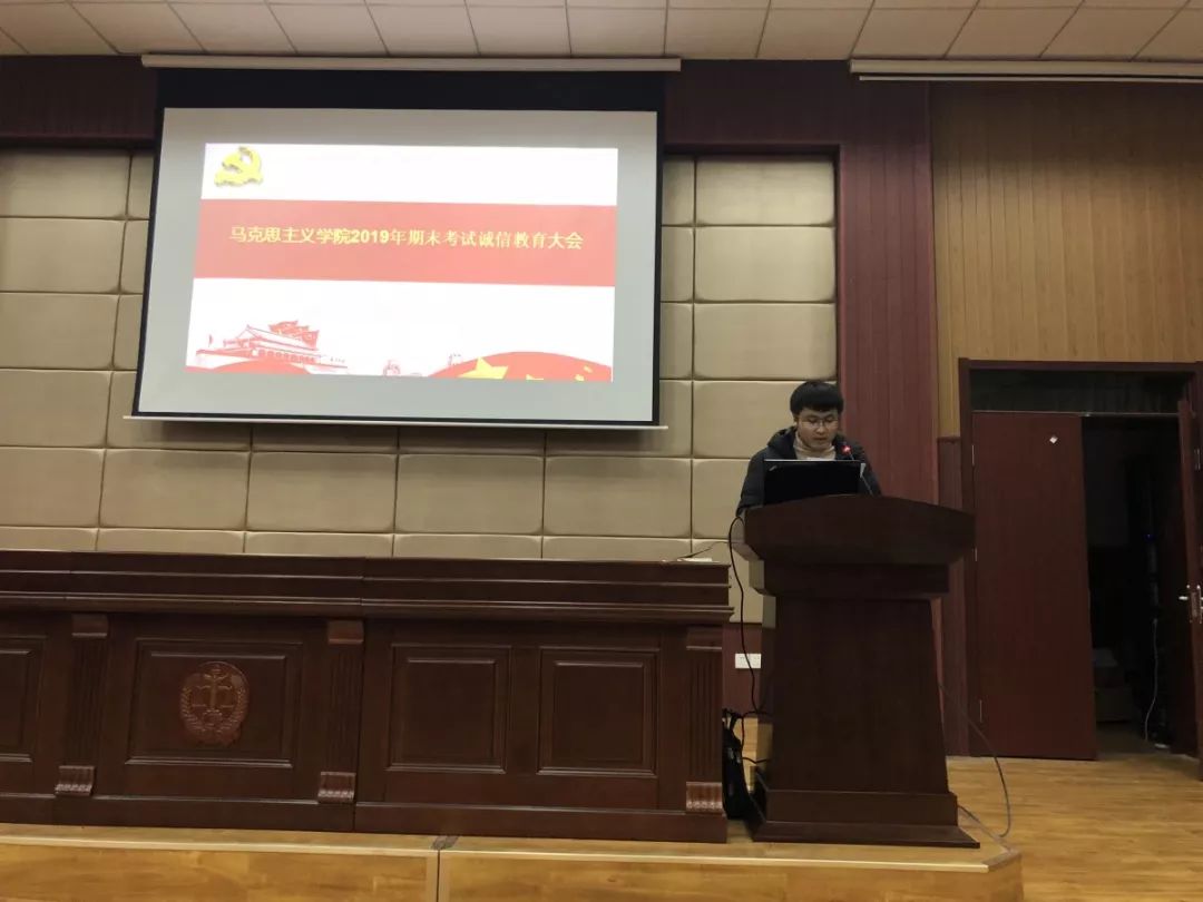 2019年期末考试诚信教育大会在笃行楼模拟法庭召开,会议由合法赌博网站