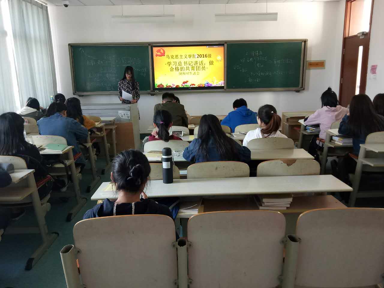 2016级思想政治教育团支部在德音楼408组织学生召开“学习总书记讲话,做合格共青团员”专题组织生活会。会议由团支部书记郭晓涵主持,团支部全体团员参加。