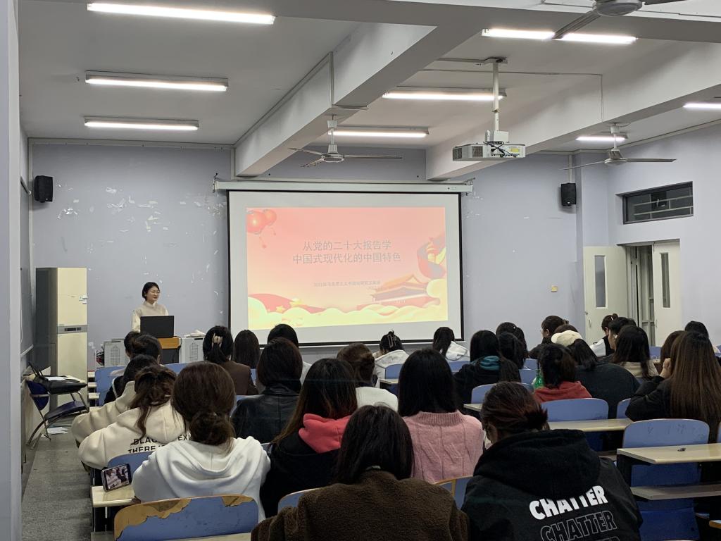 入团积极分子和入党积极分子作《学习党的二十大报告精神,培养新时代有为青年》《从党的二十大报告学中国式现代化的中国特色》的宣讲。3月16日,“笃行宣讲团” 成员2020级思想政治教育专业本科生衣伟萍前往太平路社区为居民作《刀刃向内的自我革命》的宣讲。
