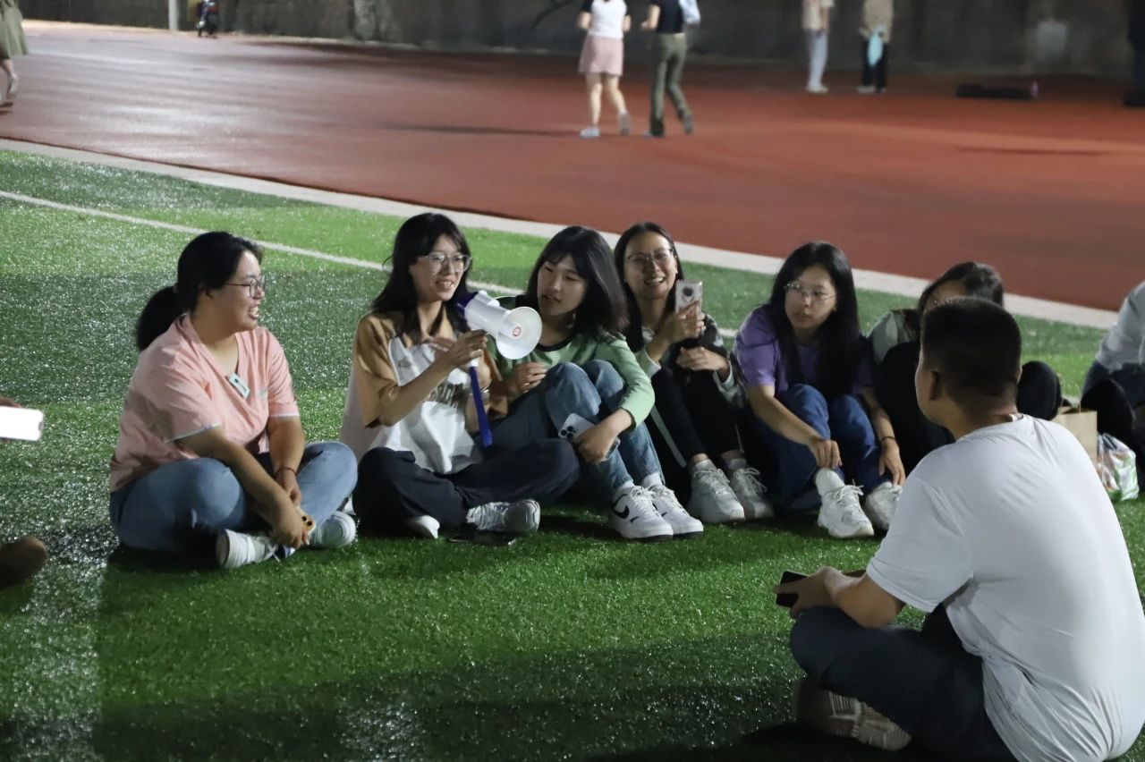 操场举行“新生破冰、快乐军训”活动。活动开始前,同学们早早地来到场地,做好准备工作,由辅导员马景瑞老师向同学们介绍本次活动流程。