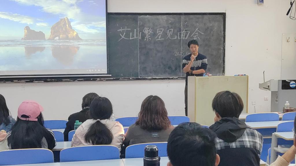 随后,艾山天文台官方研学负责人王老师以个人履历为引,鼓舞大学生“走出校园,走进社会”。她讲解了“艾山繁星”研习班下乡调研、项目创立等主要研习任务,以多项艾山天文台乡村振兴产品为例,为同学们进行项目研发提供思路。此外,王老师从三方面对同学们的调研活动提出要求,对把”艾山繁星“研习班建设成一支有纪律,有创新思想,团结有力的队伍展现了信心。