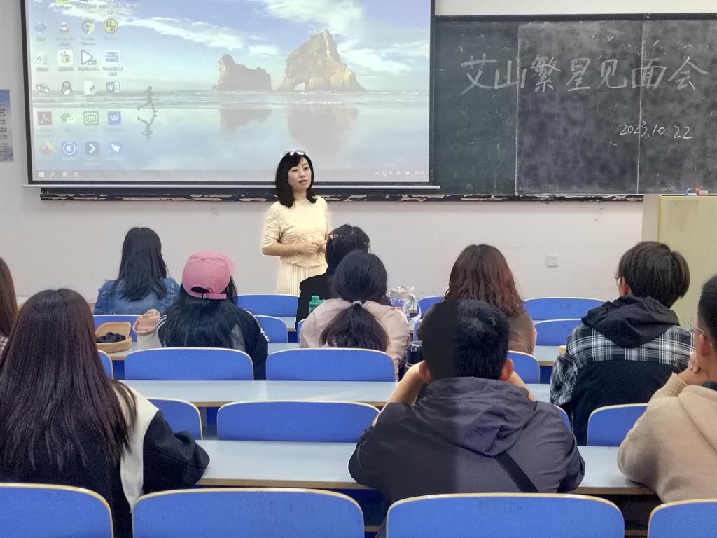 2023年10月22日下午,青大思政大课堂“艾山繁星”乡村振兴研习班导师与学员见面会在青岛大学博学楼101教室进行。参加本次会议的有艾山天文研学负责人、青大思政大课堂校内外导师,以及报名参加“艾山繁星”研习班的同学。