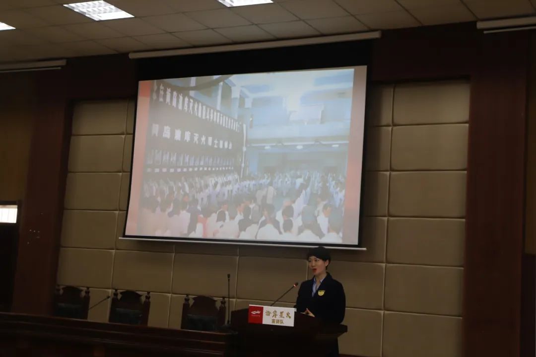 党委书记王传永上台致辞。他热烈欢迎宋红馆长及“海岸星火”宣讲队的到来,并对他们长期以来为红色教育付出的辛勤努力表达诚挚的感谢。王书记强调了新时代思政大课堂的重要性,指出它是推动党史学习教育、传承红色基因的重要平台,并要求大家深入学习党史、积极传承红色精神。