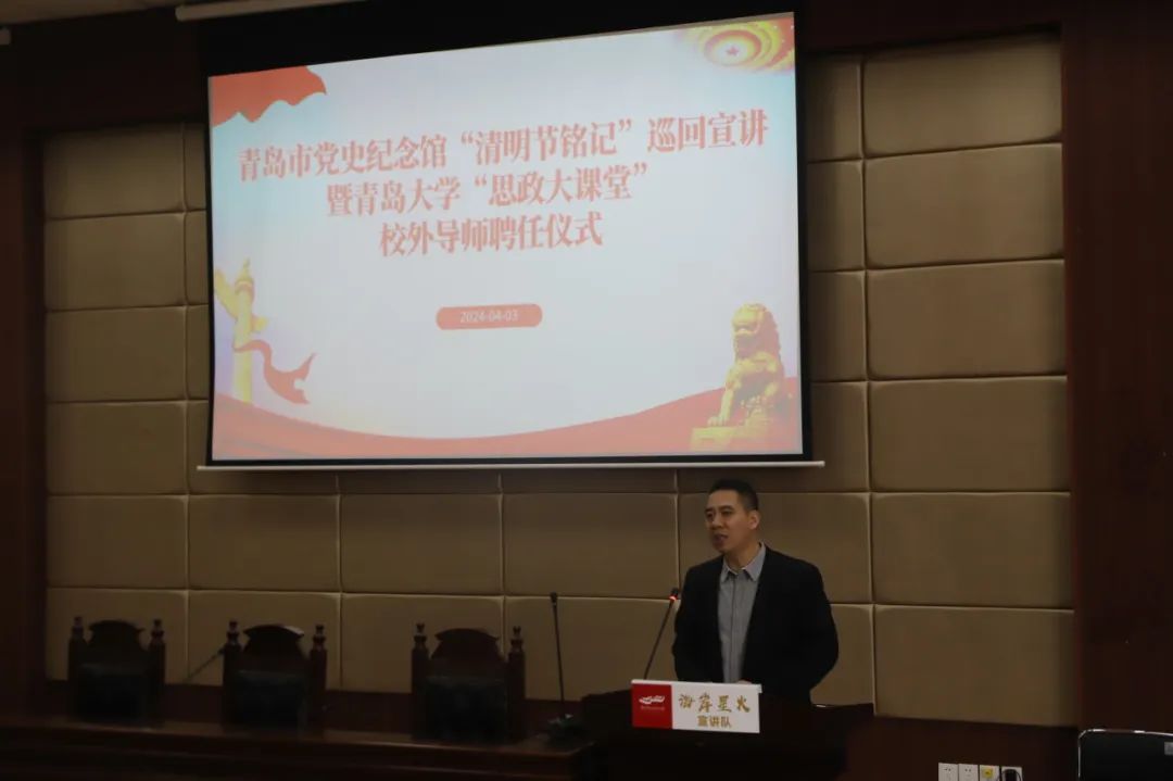 联合中共青岛党史纪念馆于4月3日隆重举办了“清明节铭记”巡回宣讲暨“思政大课堂”校外导师聘任仪式。党史纪念馆馆长宋红、网上十大合法赌博网站排名