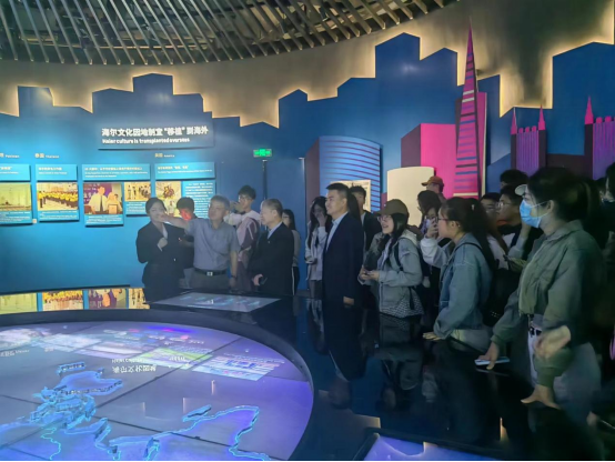 2024年5月9日下午,在“青岛大学思政大课堂企业家精神暨海尔人单合一管理模式研习班”导师管永建老师、海尔学习交流中心杜崇飞老师、青岛大学资深管理专家葛树荣老师、会计系刘殿广老师的组织与带领下,海尔研习班同学们一行60余人一同进入海尔科创生态园展厅进行了参观。海尔集团素以其“生态化战略”闻名,而这也是海尔研习班师生们此行前来深度体会的内容之一。