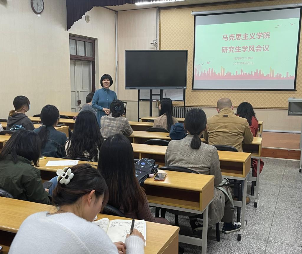 与会老师围绕结合自己教学科研经验对同学们的专业学习提出了宝贵建议。谢春玲教授指出,受疫情影响,线上线下相结合的教学方式可能还会持续,但作为马克思主义理论的研究生,更应该有应对世事变化的良好心态和能力,希望同学们能够把握时光,沉下心来读书、思考、积累知识。赵永刚教授谈到,任课老师的风格和擅长领域不同,只要用心,学生们一定可以从老师们身上学到自己感兴趣的东西,建议同学们关注学术前沿,提高学术敏感性,及时记录一些可能能为论文选题的问题。萨日娜副教授表示,前段时间线上教学有诸多不便,现在恢复线下教学是一件非常值得高兴的事情,希望同学们积极踊跃地参与课堂发言和实践活动。