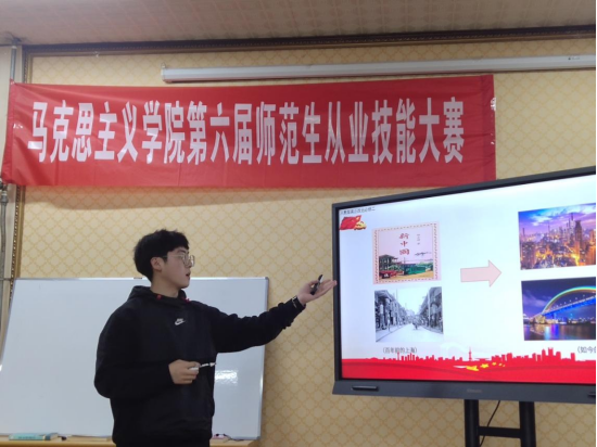 本次师范生从业技能大赛主要分为主题讲课、抽题讲课、答辩三个环节。参赛同学字正腔圆,声音明亮,仪表规范,教态自然。大家都做了充分且细致的准备,其中各种教学技巧的运用,都很好地调动了课堂气氛。在随机题目讲课阶段,每个人都独具个人特色,沉着冷静,展现出了师范生扎实的教学基本能力和技能素养,赢得了老师们的肯定。指导老师们在观看同学们的表现后有针对性地提出了意见和建议,为同学们提升自我教学技能提供了切实的帮助。