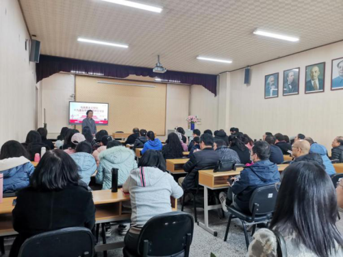 党委书记赵茗主持,院长尉利工主讲。