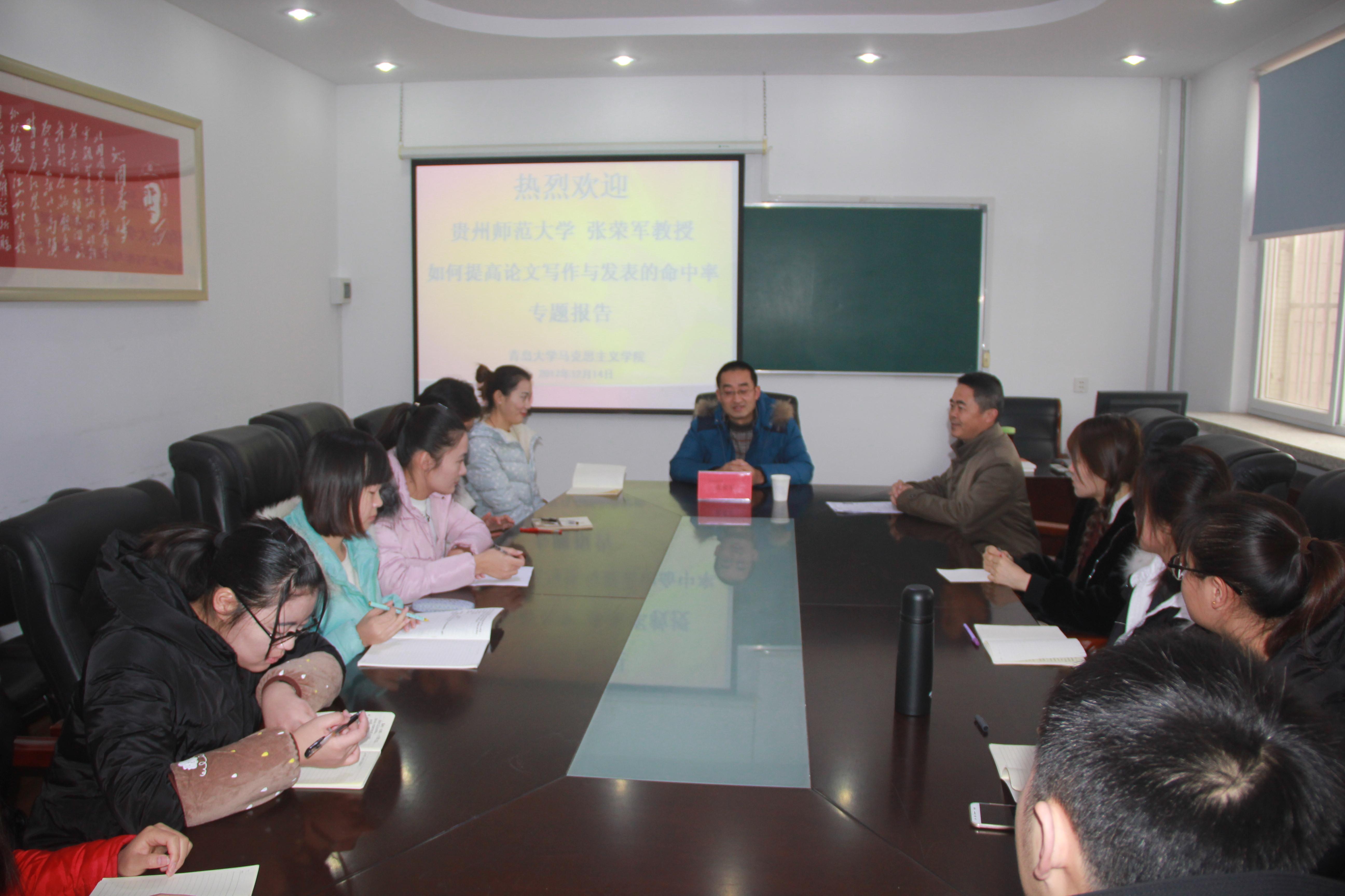12月14日上午,贵州师范大学张荣军教授来网上十大合法赌博网站排名 作题为“如何提高论文写作和发表命中率”专题讲座。讲座由合法赌博网站 常务副院长丛松日主持,合法赌博网站 2016级、2017级硕士研究生聆听了讲座。