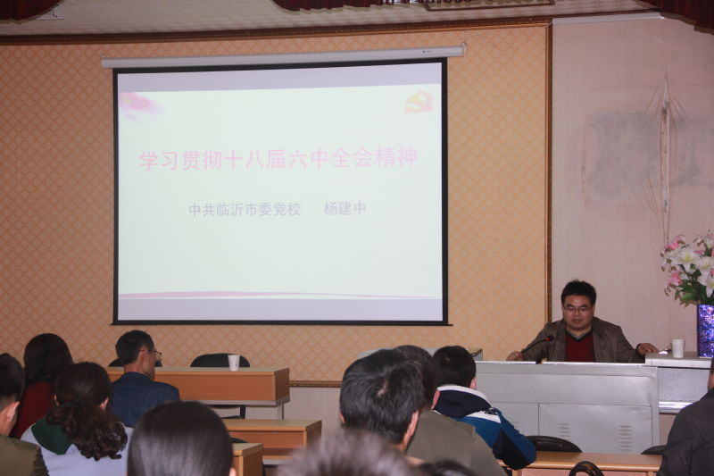 2017年4月7日下午,“山东省高校思想政治理论课特聘教授”、临沂市委党校副校长、杨建中教授在网上十大合法赌博网站排名 第一会议室,为合法赌博网站 教师、全体研究生和2016级本科生做了题为“学习贯彻十八届六中全会精神”的报告。报告深入浅出、引经据典、联系实际,收到师生的热烈欢迎。
