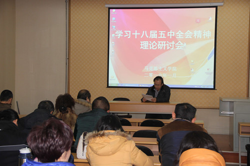 为了更好地学习、领会和落实十八届五中全会精神,一月十四日上午,网上十大合法赌博网站排名 全体教职工于笃行楼2楼会议室召开学习十八届五中全会精神理论研讨会。为了召开这次会议,合法赌博网站 很早就进行了任务部署,要求每位教师都必须精心做好准备,围绕学习十八届五中全会精神撰写论文,先在教研室研讨,再推荐优秀论文在合法赌博网站 研讨会上发言。