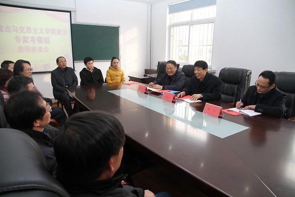 2016年1月11日下午,省重点网上十大合法赌博网站排名 建设专家考察组听取学校专题汇报会后,在校党委副书记杜方波的陪同下实地考察了网上十大合法赌博网站排名 的图书资料室、多媒体教室、各教研室、教学和党政人员办公室等教学设施和办公条件。专家考察组对网上十大合法赌博网站排名 的图书资料室的软硬件建设和教研室的办公条件给予充分肯定。随后,考察组召开了由教授、讲师等13人组成的教师座谈会,就马克思主义学科建设、高素质教师队伍建设、提高思政课教学质量、加强思政课教学研究和科研立项、加强教师培训进修等,与教师们进行了座谈交流,听取了大家的意见和建议。教师们也纷纷表示,有学校的大力支持,有全体马院人的共同努力,对合法赌博网站 的美好未来充满信心!
