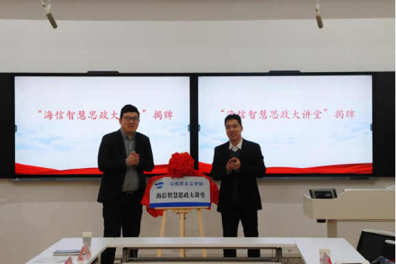 捐赠总价值11万元的智慧教室设备一套,并组织开展了工程施工。当前,各项施工已完成,“海信智慧思政大讲堂”正式投入使用。