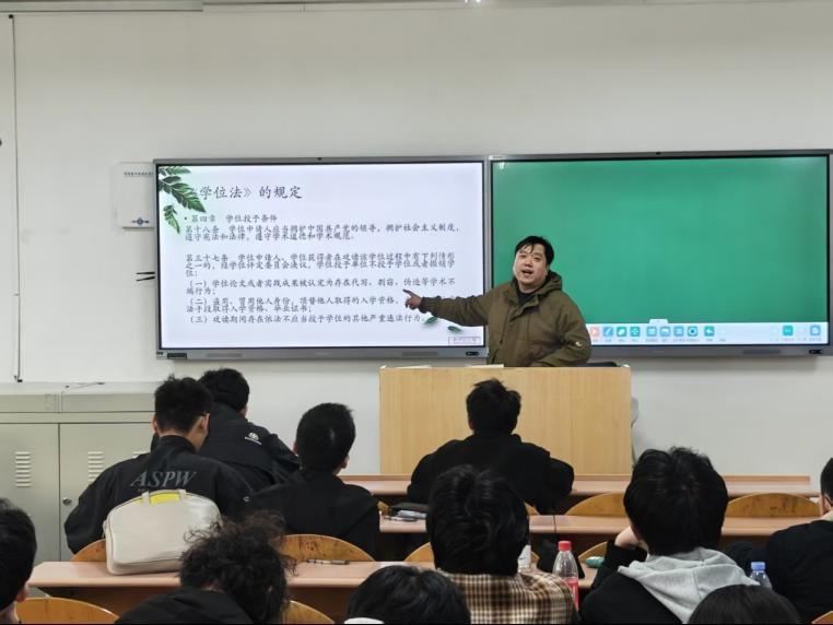 在理论教学方面,原理教研部和概论教研部的全体教师,经过集体备课,明确教学要求,统一教学内容,将“诚信”主题融入《马克思主义基本原理》和《毛泽东思想和中国特色社会主义理论体系概论》两门课程,对全校2023级、2024级本科生开展理论教学。课堂上,授课教师从“诚信”的词源语义出发,结合《礼记》《大学》《论语》《孟子》等经典文献,阐明了“诚信”作为中华民族传统美德的内涵和要求;结合《新时代公民道德建设实施纲要》,阐明了社会主义核心价值观中“诚信”道德基石的地位和具体要求;以央视新闻《当大学论文多了“AI味”,高校如何给AI工具使用“立规矩”?》为导引,结合《中华人民共和国学位法》《国家教育考试违规处理办法》的相关规定,为学生讲授了在AI快速发展的今天,落实学术诚信、考试诚信的重要意义,强调当代大学生应从学习生活中落实“诚信”要求。