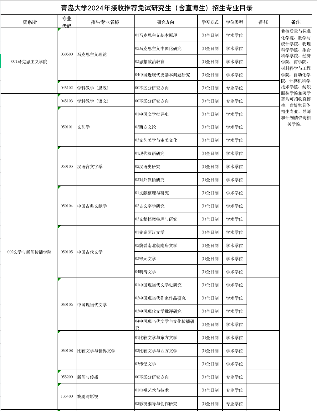 关于青岛大学2024年接收优秀应届本科毕业生免试攻读研究生(含直博生)的通知